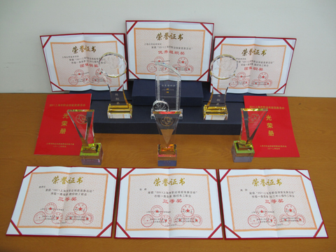 7月12日上午,市人保局、市总工会、团市委、市教委、市经信委和市国资委等在上海信息技术学校联合召开表彰大会,会上表彰了“2011上海市职业技能竞赛活动”市级一类竞赛获奖选手和获奖单位。我校高职学院荣获了“数控铣工”团体铜奖、“加工中心操作工”团体铜奖和优秀组织奖,高职学院机电一体化技术专业的张峰、周阳和潘孝旺同学分获“数控车工”、“加工中心操作工”和“数控铣工”三等奖,张峰同时获得数控车工二级国家职业资格(技师)证书。