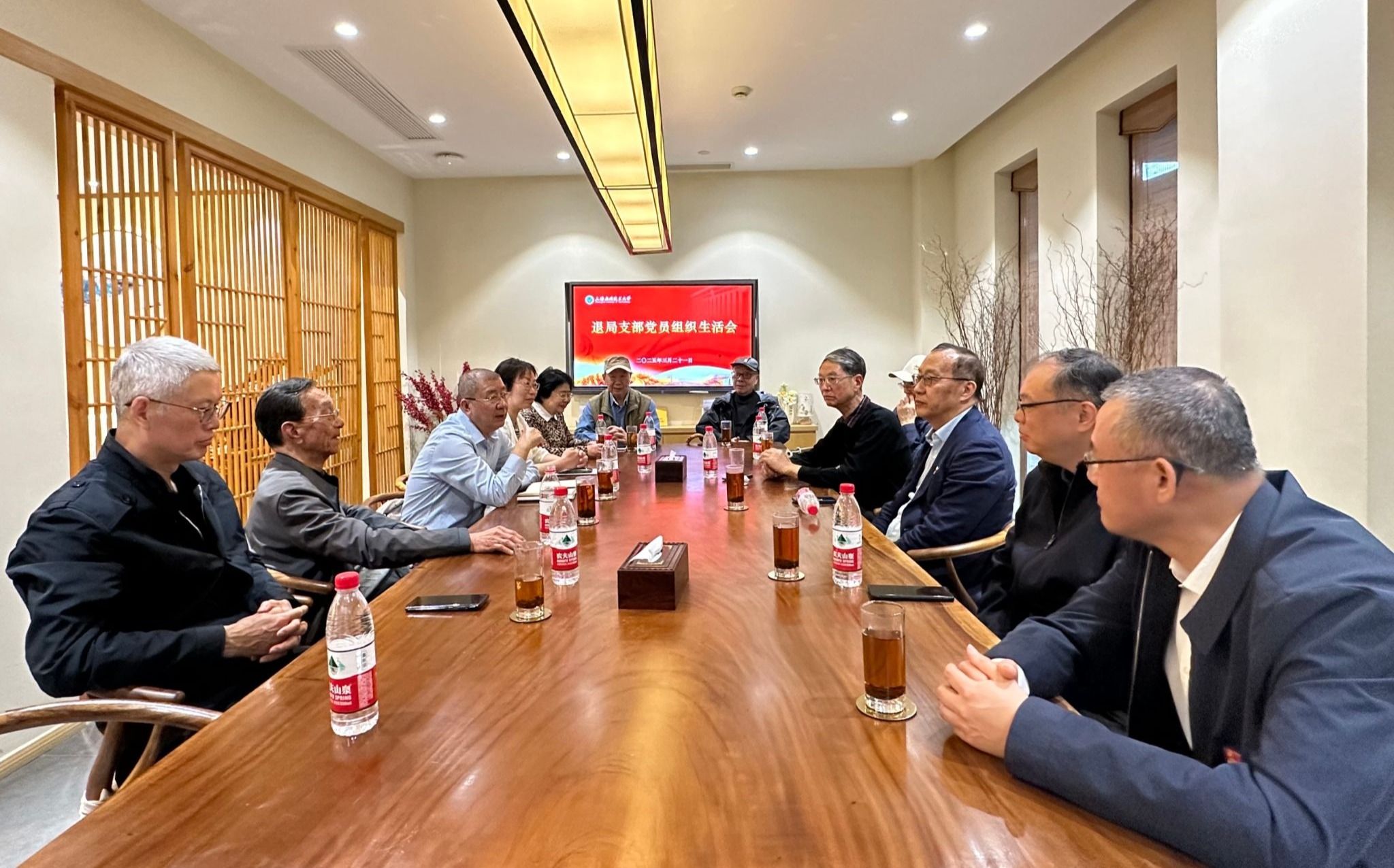 参观后,退局支部党员开展支部组织生活会,党支部书记刘宇陆主持会议。离退休党委书记陈红作了近期校情通报,并向与会老领导们汇报了启动贯彻中央八项规定精神学习教育等离退委党政年度重点工作。老领导们就目前的国际国内形势、学校的发展状况、参观体会、养生心得等进行了充分的交流。