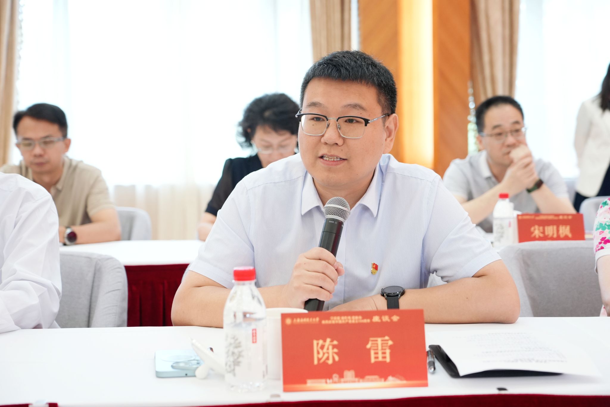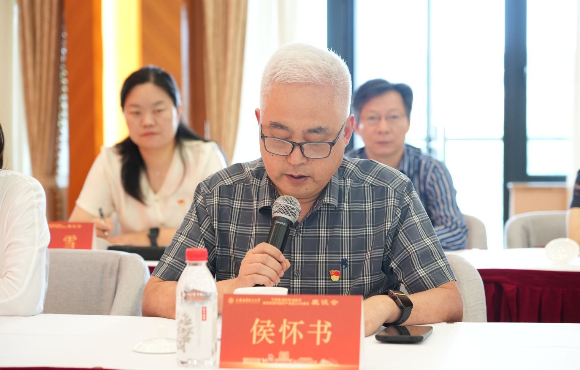 在喜迎中国共产党成立104周年之际,6月25日,学校举行“学思想、强作风、建新功”主题座谈会。校党委书记郭庆松出席并讲话。校党委副书记陈海瑾主持座谈会。校党委副书记、纪委书记、监察专员李健,校党委常委、副校长、党委组织部部长王占勇出席,党群部门负责人、二级党组织书记、党务工作者及党员师生代表齐聚一堂,重温初心使命,共话时代担当。