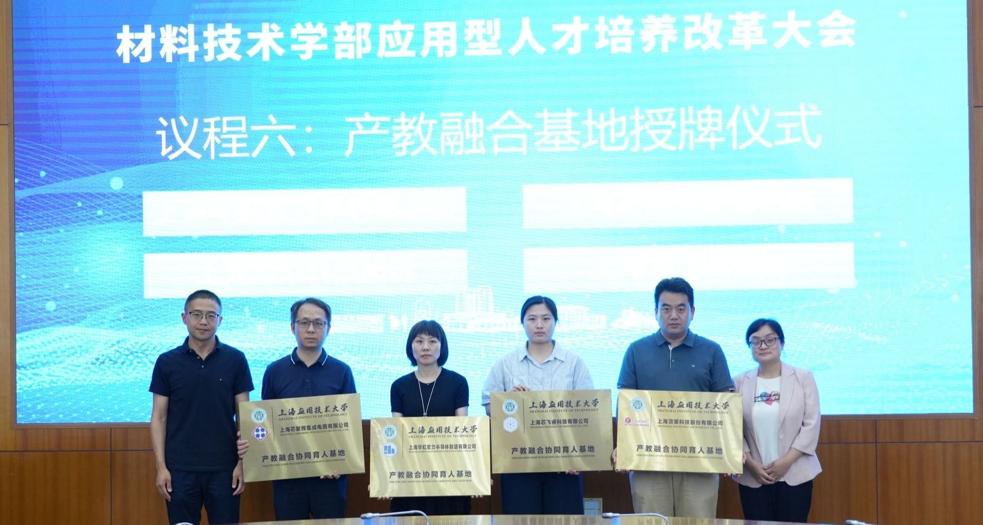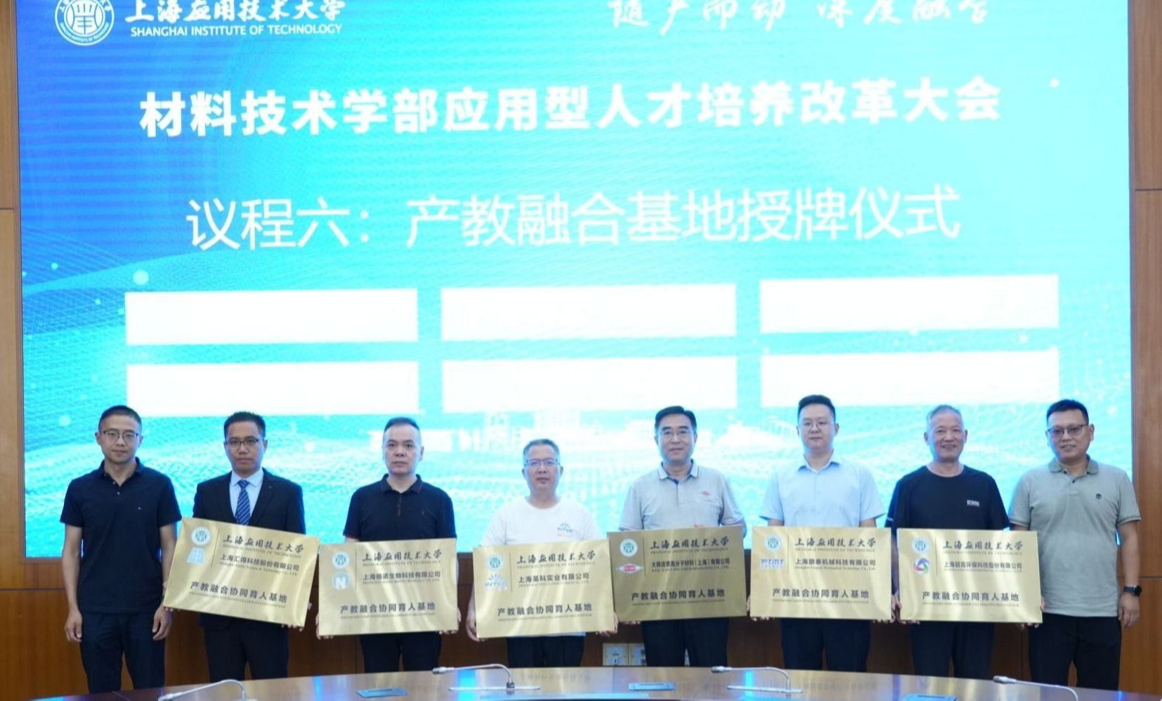 会上,学部为荣誉理事长、理事长及产业学院负责人颁发聘书,同时授予上海汇得科技股份有限公司、上海华虹宏力半导体制造有限公司等10家企业“产教融合协同育人基地”称号,标志着校企协同育人迈入新阶段。