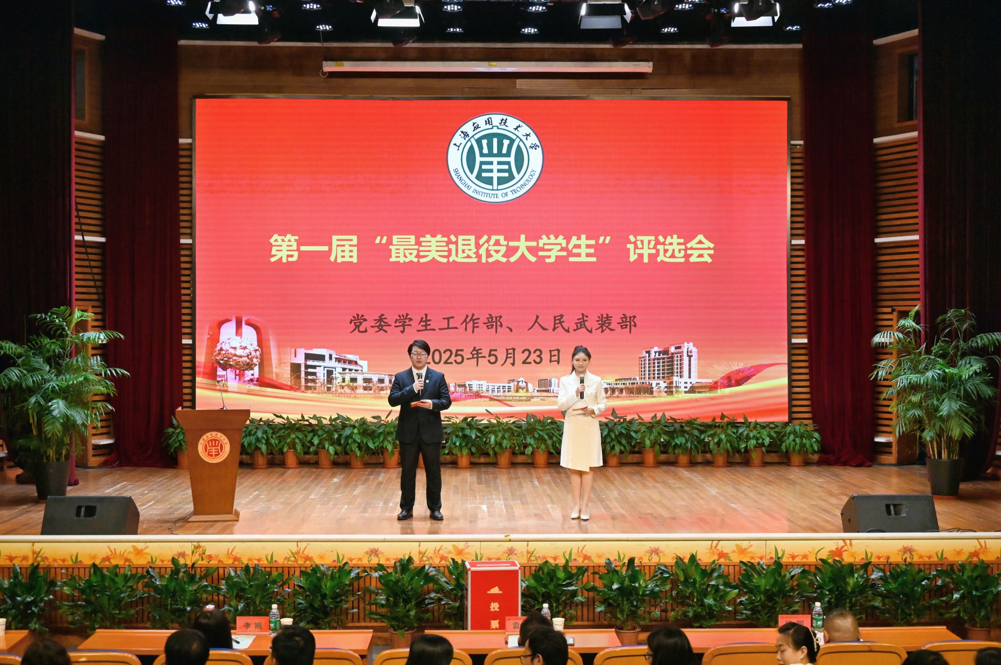 学校举行第一届“最美退役大学生”评选会 5月23日下午,学校第一届“最美退役大学生”评选会于大学生活动中心多功能厅举行,党委学生工作部、人民武装部部长袁翔出席评选会,教师学生代表近200人参加本次活动。评选会上,11名来自各学院(部)的候选人全方位展现自己在军旅生涯和校园生活中的成长与蜕变,他们的故事,或感人至深,或激情澎湃,现场不时响起热烈的掌声。经评委投票,智能技术学部侯赵阳、化工与能源技术学部赵智博、材料技术学部杨艺虹、艺术与设计学院刘树豪、...