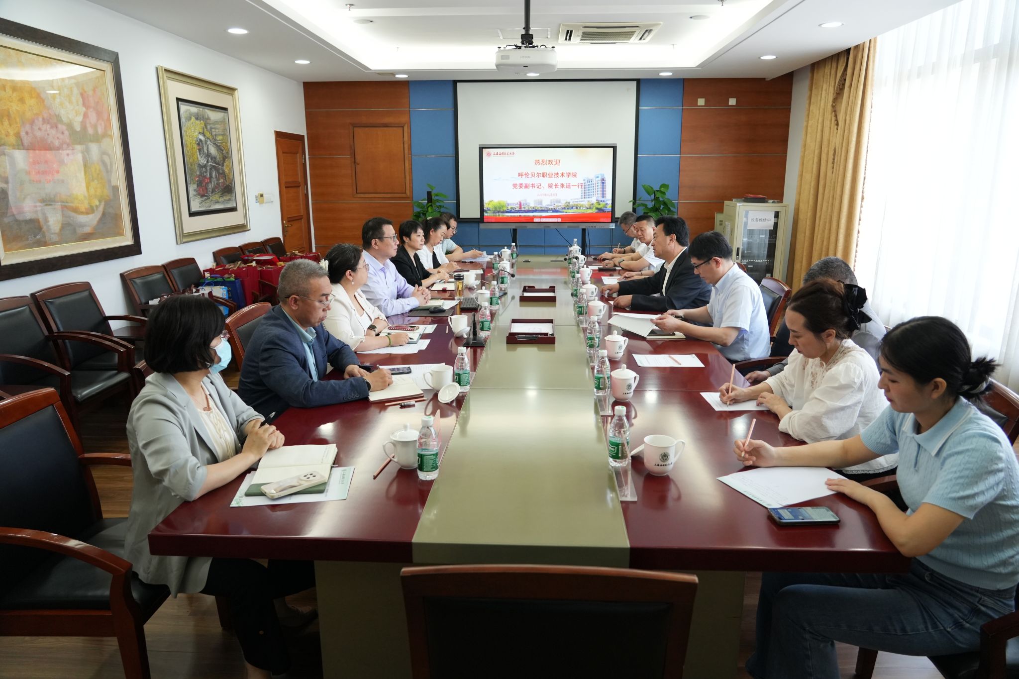 呼伦贝尔职业技术学院党委副书记、院长张廷一行来访我校 6月3日,呼伦贝尔职业技术学院党委副书记、院长张廷,党委委员、副院长邱翔一行来访我校。校长汪小帆、党委副书记陈海瑾热情接待来宾,双方进行座谈交流。党政办公室、教务处、信息化技术中心、国际化妆品学院、智能技术学部和化工与能源技术学部相关负责同志陪同参加座谈。汪小帆详细介绍了我校的办学特色和发展成果。他指出,学校秉持“应用导向、技术创新”的办学定位,主动对接国家战略和产业需求,通过政产学研深度融合,积极推进科研范式变革,...